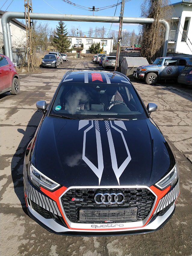 - Projekt graficzny – przygotowanie wizualizacji, która pokazuje, jak będzie wyglądał pojazd po oklejeniu. Klient akceptuje projekt.